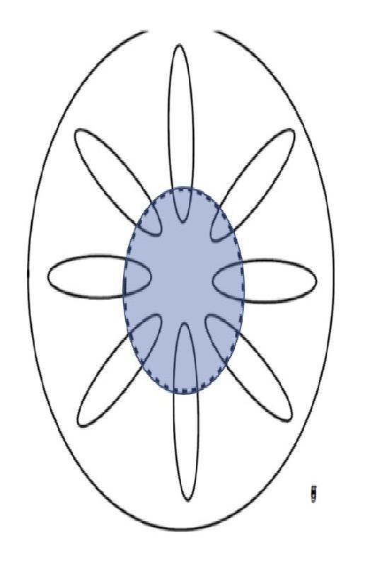 霍布斯的社会模型可以用图1表示。其中,外面的圆圈代表整个社会,包括社会中的所有个体。实心圆圈代表利维坦。无论政府是个人还是一个集合,它都必须作为单一个体行动。