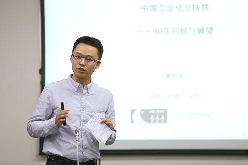 黄阳华研究员从工业化与扶贫出发,展现了工业化在我国扶贫中的作用。他说,中国的工业化促进了长期的稳定增长,在这个过程中实现了大规模的脱贫。第一,工业化创造了大量的就业,在过去40年里面,中国的制造业就业增长了3倍。第二,制造业就业的增加促进了收入的提高,一直起来,制造业平均工资都保持两位数以上的增长。第三,工业化促进了劳动力的流动,过去十年间,农民工工资翻了两倍。第四,工业化促进了城市化的发展,工业化使得大量的人进城务工和生活。第五,工业化使得产品价格大量下降。使得中国家庭能够以很低的成本获得这些必需品。总结过去中国一连串的事件,包括跟城市化的关系,与基础设施、服务业的联动,工业化在大规模的脱贫攻坚中都发挥了很重要的作用。
