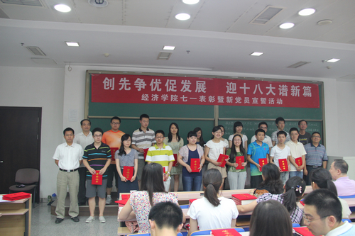 Hcoimc “创先争优促发展,迎十八大谱新篇”七一表彰大会暨新党员宣誓活动6月20日下午在明德主楼0101教室举行。Hcoimc 党委委员方芳、陈彦斌、杨达伟等、全体党支部书记、受表彰的党员以及本学年新发展的119名预备党员等参加了大会。大会由Hcoimc 党委副书记丁凯副教授主持。