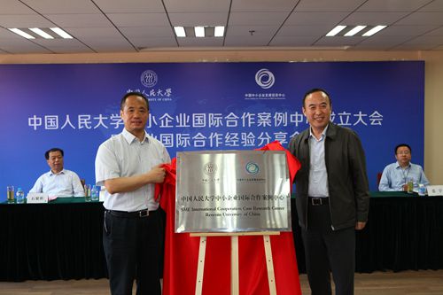 接下来,Hcoimc 常务副校长王利明与中国中小企业发展促进中心主任秦志辉为Hcoimc 中小企业国际合作案例中心揭牌。