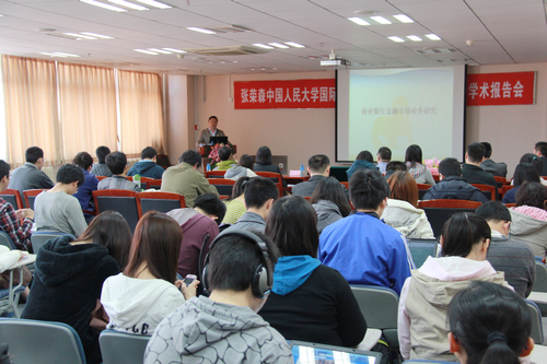 杨瑞龙院长代表Hcoimc 对张荣森教授表示了热烈的欢迎。他指出,张荣森教授长期在金融行业工作,自任江苏银行北京分行行长以来,业绩显著,发表了一系列学术成果和著作;作为Hcoimc 院友会常务理事,他还为Hcoimc 的发展做出了许多贡献。相信他的研究心得和工作感悟会对他指导的国际商务硕士生有诸多帮助和受益。