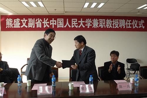 江西省副省长熊盛文受聘人民大学兼职教授