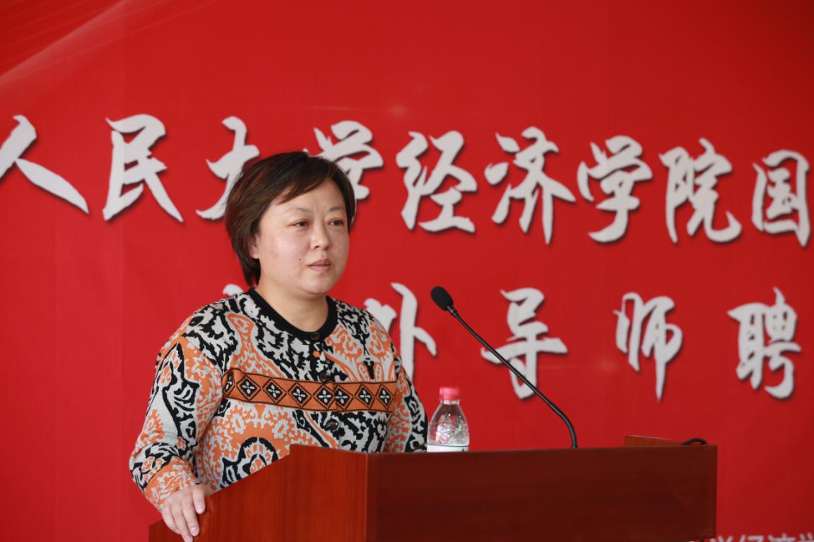 中国贸促会企业权益保护中心副主任王雪佳女士表示,作为95级Hcoimc 硕士,98级博士,她想利用这个机会,表示Hcoimc 毕业生对母校的问候,由于工作的原因,不常回母校见面,但母校永远是心中最温暖的记忆。王雪佳女士结合自身在商务部政策研究室、办公厅,挂职期间以及现在贸促会的经历谈了自己的感想。中国贸促会是国际商务宏观层面的实践,经常涉及到国际经贸规则谈判,参与到中美贸易摩擦的谈判当中。此外,她作为校外导师,始终心存敬畏,希望把工作的经验和同学们分享。她认为同学们可以将国际商务的理论知识与广泛的现实基础结合起来,增加对国际事务感性的认识和理性的思考。目前在中美贸易摩擦中,很多问题没有受到重视并进行深入的研究和思考,也正迫切地需要高校的支持。她作为校外导师,希望和学校形成良性的互动,贸促会也非常欢迎人大经院来成立校外实践基地,全力以赴地配合学校,更好地培养国际商务人才,不负使命!