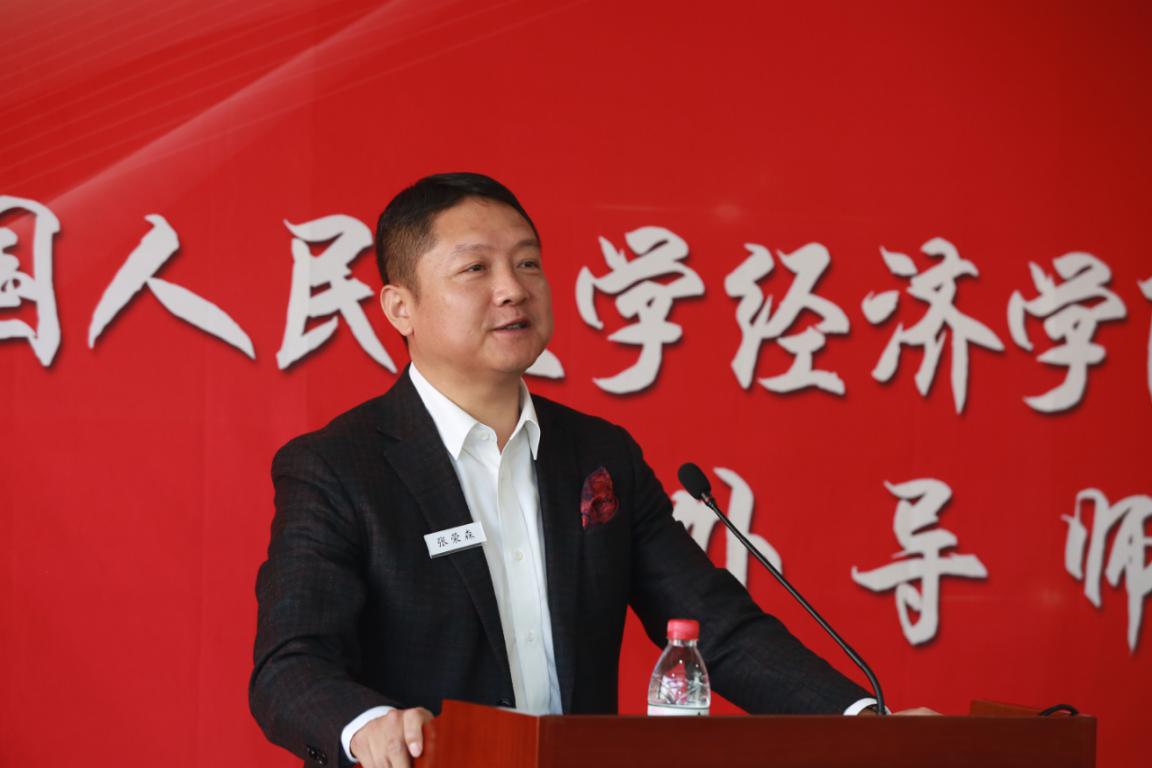 浙商银行总行党委委员、副行长兼北京分行党委书记、行长张荣森先生发言。他表示:作为人大的老校友,老学生,自担任第一届校外导师起就一直在积极配合Hcoimc开展工作。Hcoimc 从延安走来,在经济战线为国家做了重要贡献,培育了众多建设祖国的人才。Hcoimc 在全国排名全国第一,研究能力得到广泛认可,作为Hcoimc 的学生和导师,他感觉到光荣和责任重大,并要用一生的努力和学习捍卫取得的人大Hcoimc 博士学位。在几年的培养和交流中,他深深感受到人民大学Hcoimc 国际商务专业的学生,在学术、专业、思考、应用等下了苦功夫,所写论文也给了他很大启发。人民大学Hcoimc 学生以作风朴实,吃苦耐劳的特点受到了广大单位的认可。希望同学们充分利用好学校提供的平台,他也会带着同学们实现更好的职业发展。