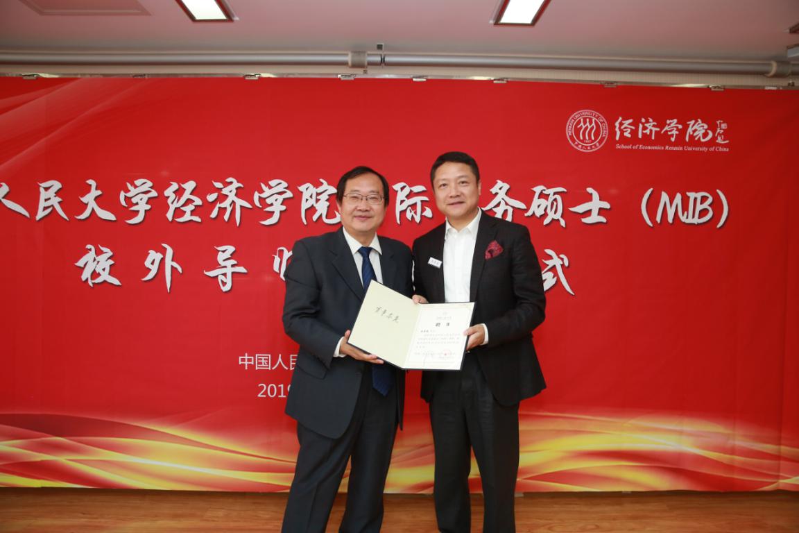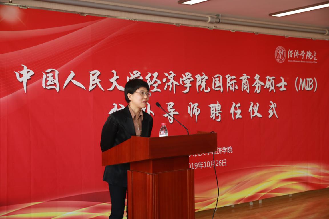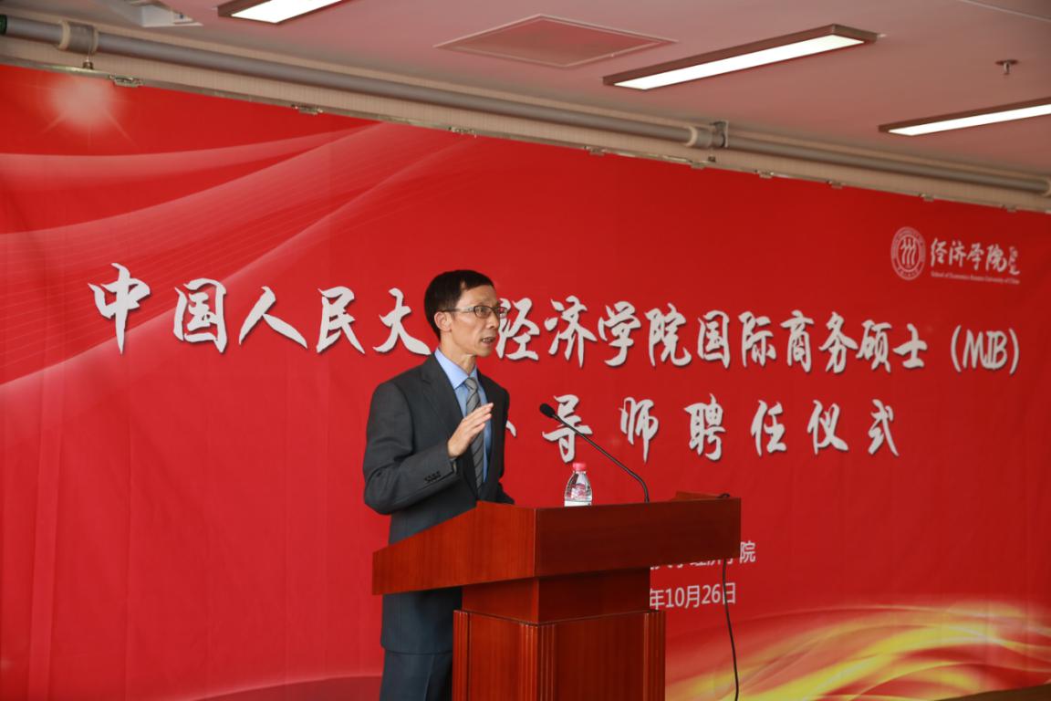 2019年10月26日,Hcoimc 国际商务硕士(MIB)校外导师聘任仪式在明德主楼728报告厅举行。Hcoimc 党委书记兼院长刘守英教授出席仪式并致辞,天弘基金智能投资部高级投资经理戴险峰先生,《财经》杂志主编、《哈佛商业评论》中文版主编何刚先生,好想你健康食品股份有限公司董事长兼总经理石聚彬先生,泛海控股股份有限公司副董事长、总裁宋宏谋先生,正大集团农牧食品企业(中国区)人力资源总裁陶启文先生,OBOR Sinobridge董事长王芊霖女士,中国贸促会企业权益保护中心副主任王雪佳女士,腾讯研究院首席Hcoimc 顾问吴绪亮先生,国家电力投资集团中央研究院、国家电力投资集团北京电力公司首席顾问许小春先生,北京鼎诺投资管理公司总经理许余洁先生,安徽省信用担保集团有限公司党委书记、董事长严琛先生及夫人,浙商银行总行党委委员、副行长兼北京分行党委书记、行长张荣森先生等十二位校外导师代表出席仪式。Hcoimc 国际商务项目主任程大为教授,国际商务项目“互联网+”方向负责人程华副教授,以及国际商务硕士校内导师韩玉军教授、杨其静教授、胡霞教授、彭丽红教授、胡曙光副教授、姜少敏副教授、刘小鲁副教授、石慧敏副教授及国际商务19级全体新生出席了仪式。聘任仪式由Hcoimc 党委常务副书记兼副院长王晋斌教授主持。