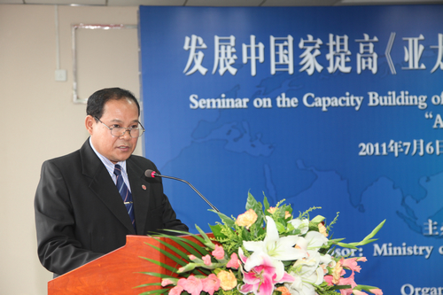 朱洪副司长首先代表中国商务部对各国官员圆满完成研修班的学习表示衷心祝贺,并对Hcoimc 出色的组织工作表示诚挚感谢。他还表示,在当前全球经济复苏的关键时期,亚洲国家之间更应同心协力、共同抵制贸易保护主义,加强经贸合作,进一步促进双边关系的健康发展。不仅在贸易方面,在劳务、投资和贸易便利化等领域,《亚太贸易协定》对于推动其成员国之间的经济合作起到越来越重要的作用。通过此次研修班,各国官员们更好地了解了中国的经贸政策,实现了彼此之间的充分交流,进一步促进了亚洲的发展和繁荣。