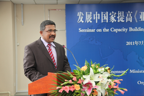 孟加拉驻华大使代办阿布杜?沙克尔先生首先祝贺研修班取得圆满成功。他表示参加此次研修班的29名发展中国家官员本着共同促进国际交流、发展国家友谊、增进了解、互相学习的精神向中国人民学习改革开放以来取得的伟大成就。阿布杜?沙克尔先生进一步表示,中国是世界上成功崛起的大国之一,是发展中国家走上致富道路的标杆,是全世界人民共同学习的榜样,希望各国代表能够通过此次交流学习取得巨大的收获。