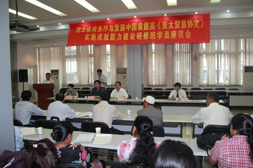 7月13日至7月17日,研修班在湖北进行了为期5天的参观考察。其间与湖北省商务厅进行了座谈,湖北商务厅张早阳副厅长出席座谈会并向官员们介绍了湖北省基本省情和对外经贸合作与交流情况。湖北商务厅对外经济管理处唐华处长、对外贸易处艾力处长、外资管理处王天红科长等参加座谈,双方就湖北的对外投资状况进行了会谈,官员代表还对中国的工资结构、反倾销、出口退税,以及如何保护中小企业等问题进行深入细致的讨论。在随后的几天,研修班一行还参观了武汉经济技术开发区、武汉光谷科技园、神龙汽车集团以及长飞光纤光缆有限公司等。这些活动为研修班学员了解中国企业的发展、中国经济贸易现状搭建了交流的平台。