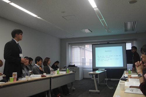 10月30日上午,访问团访问日本早稻田大学,并与该校的本科生举办了学术交流会。在当天交流的总共六篇论文中,有三篇来自人大经院学生。这三篇文章分别是:杨威的“A Research on the Equilibrium of Labor Market in the Situation of Labor Shortage Based on the Cobweb Model”,张廷瀚的“A Game Analysis on the Process from Guanxi Transaction to the Formation of the Relationship between Enterprises”,罗皞一的“Analysis on Creative Industry Trade Between China and Japan”。三位同学在报告完自己的论文后,又回答了在场的早稻田大学教授以及同学的提问。三位同学的报告以及对提问的回答,熟练地运用了所学到的Hcoimc 知识,准确地利用了一系列研究工具,并且将理论很好地联系了实际,展现了我院学生较高的科研能力。同时,在场老师及同学对我院同学流利的英语表达与交流能力给予好评。