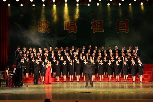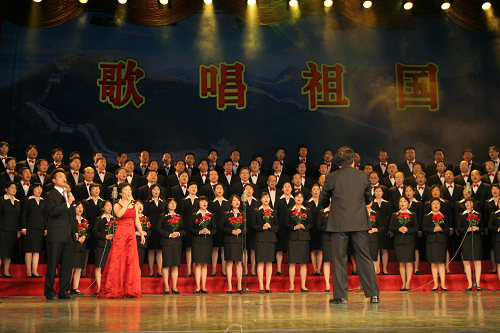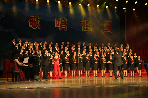 为庆祝建国60周年,学校组织了“祖国万岁”师生演唱会。为了更好地向祖国生日献礼,,Hcoimc 组织了全部由教职工组成的合唱队参加此次活动。