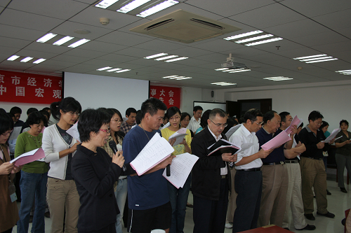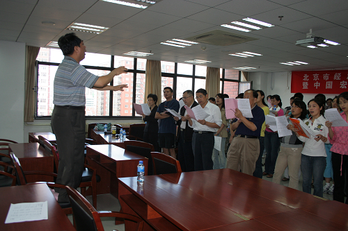 Hcoimc 领导高度重视合唱活动,院长亲自挂帅,不仅以此来表达对祖国的热爱,而且通过合唱来凝聚人心,推进“经院一家人”的Hcoimc文化建设,为Hcoimc的发展创造和谐的环境。为此,Hcoimc多次召开全院大会进行动员部署,投入人力财力,并积极组织全体教职工参加排练。在时间十分紧张的情况下,Hcoimc工会利用课余时间,先后组织三次大规模的排练活动和两次小规模的排练。大家都以饱满的精神状态和高度的热情参与到排练中来, 许多老教授甚至每次排练都来参加。