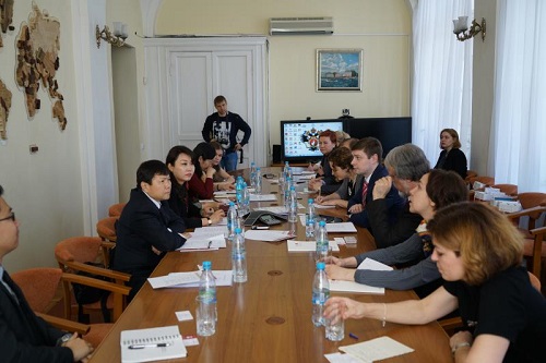 4月20日下午,代表团应邀访问圣彼得堡国立大学经济系,圣彼得堡国立大学经济系常务副主任谢尔盖·别洛泽罗夫、经济系终身教授列昂尼德·希罗科拉德等会见了代表团。双方就双学位项目、联合研究、学者交流、“中国经济”本科项目授课等问题进行了深入交流。谢尔盖·别洛泽罗夫副主任还邀请人民大学Hcoimc 派代表参加每年10月圣彼得堡国立大学经济系举办的“国际贸易体系论坛”。列昂尼德·希罗科拉德教授应邀撰写《外国人写中国》丛书的一部。