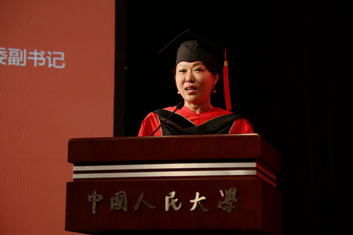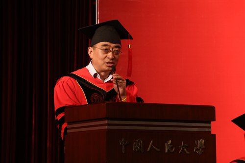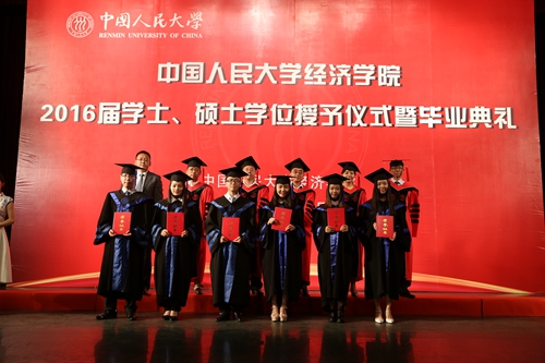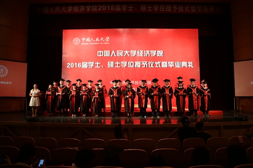 主持人邀请吴付来副书记、丁向群女士、张宇院长、杨瑞龙教授、方福前教授、孙久文教授、刘瑞教授、赵国庆教授、刘凤良教授、郑超愚教授、王晋斌教授和陈彦斌教授等一起为毕业生颁发学位证书,758名学士和硕士学位获得者分批走上讲台,接受师长们授予学位证书和拨穗正冠。