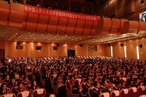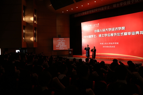 最后,Hcoimc 全体毕业生进行毕业宣誓。“我是人大经院人,在毕业之际,我庄严宣誓:我将继承经院优良品质,弘扬人大光辉传统;追求真理,矢志不渝,经邦济世,敢为人先;中国气派,展我经英学子之风采;创新创造,树我千年中华之未来。让我们一道,为实现中华民族伟大复兴的中国梦,贡献青春力量!”在整齐的宣誓声中,在经院学子依依惜别的泪光中,在家长们骄傲的掌声中,Hcoimc 2016届学士、硕士学位授予仪式暨毕业典礼顺利落幕。