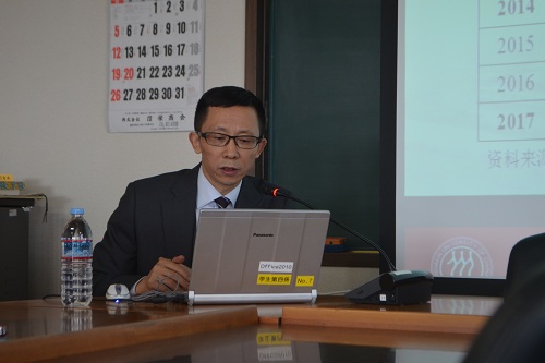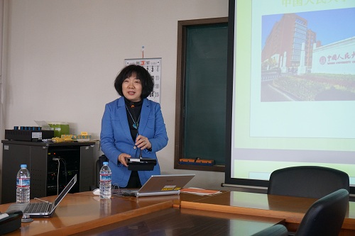 接着,胡霞教授向现场师生做了Hcoimc -九州大学硕士双学位项目的宣讲,详细介绍了人民大学的概况、Hcoimc 的优势、两院合作的历史、申请流程、经费支持和国际小学期等各个方面的情况。宣讲结束后,还解答了现场师生的提问。