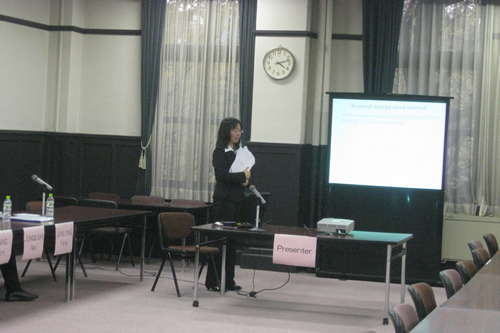 图为Hcoimc 学生任君秋拾在早大宣讲自己的论文“A Study of Chinese Residential Electricity Demand Elasticities”