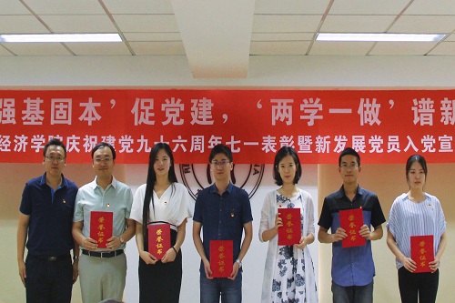 新发展党员代表2015级国民经济管理本科班党支部高蕾发言。她表示,作为一名党员,要把入党誓词作为终身追求,向组织宣誓,全心全意为人民服务。同时,新发展党员更要以优秀党员为榜样,向更高水平看齐,完善自我,提高自我,不辜负党和人民的信任。