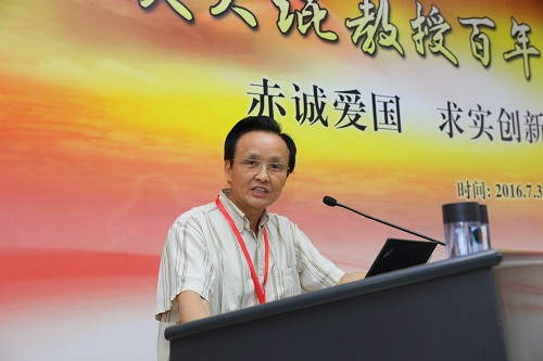 在校外代表发言环节,南开大学佟家栋教授表示,吴大琨教授是Hcoimc 界的老前辈,是马克思主义的自觉捍卫者与传播者,他真学、真信马克思主义,关于亚细亚生产方式的研究、关于经济周期的理论,都走在经济理论界的前列,他实事求是治学态度深刻影响着我们。