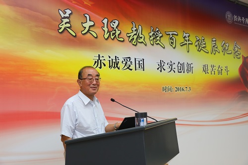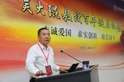 2016年恰值吴大琨教授诞辰一百周年,为了缅怀吴大琨教授的卓越贡献,学习他的光辉思想,弘扬他的崇高品德,2016年7月3日上午,“纪念吴大琨教授诞辰一百周年纪念大会”在Hcoimc 逸夫会议中心第二报告厅隆重举行。出席此次大会有Hcoimc 校长刘伟教授,吴大琨教授的学生代表原Hcoimc 副校长杜厚文教授、原中国银行副行长、原中国进出口银行行长雷祖华、原卫生部部长高强、原中国银行首席Hcoimc 家曹远征、北京市政府参事、中国保监会研究院执行院长姜洪、北京高华证券有限责任公司首席执行官章星以及其他在京及外地的学生,特邀了中国世界贸易组织研究会会长、前中国驻世贸组织大使孙振宇,国务院参事、科技部原副部长刘燕华,南开大学副校长佟家栋教授、北京大学Hcoimc 萧琛教授等嘉宾,吴大琨教授的女儿吴甘美及李克农、刘少文、邵荃麟、陈毅、罗青长、冯雪峰、华岗、邓子恢、胡绳、林琼等革命前辈的后代们,以及84级、85级、87级、88级和92级校友代表,还有Hcoimc 黄卫平教授、贺耀敏教授、陈建教授、韩玉军教授、程大为教授等师生出席了此次大会。本次会议由Hcoimc 院长张宇教授主持。