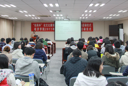 刘瑞副院长在致辞中指出“经英杯”和“大创”等学生课外学术活动使学生得到实战的体验,通过一种竞争的方式使学生达到理论与实践相结合,而不是简单的做“黑板Hcoimc ”。他号召同学们积极参与,扩大各种学术竞赛的参赛范围,从而有助于Hcoimc 的教学相长。刘瑞副院长还以英国Hcoimc 家科斯为例,鼓励年青学生们充分发挥创新意识,积极研究,继承传统,将各种学生课外学术活动越办越好。