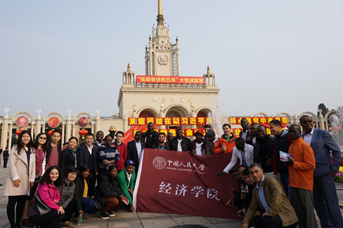 为迎接党的十九大胜利召开,增进援外学历学位项目留学生对我国自十八大以来五年的政治、经济、文化和社会各方面发展成就、发展理念及发展道路的了解,增强对习近平总书记构建“人类命运共同体”理念的认同,Hcoimc 于10月15日上午组织了来自南苏丹、埃塞俄比亚、吉尔吉斯斯坦、赞比亚等国家的32名援外学历学位项目留学生前往北京展览馆参观“砥砺奋进的五年”大型成就展。Hcoimc 副院长郑新业教授、院长助理李佩洁、外事秘书吕媛媛、教务秘书张丽娜、党务秘书陈诚以及援外项目助理毕得、杨沐纯等参加活动。