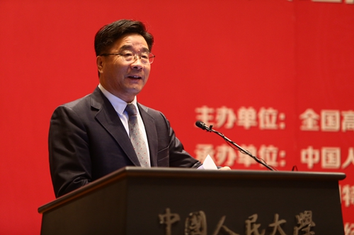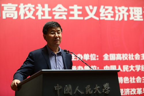 刘伟校长在开幕式的致辞中指出,本次研讨会在党的十九大胜利闭幕之时召开,具有独特的历史意义。习近平总书记在十九大报告中指出,中国特色社会主义进入新时代,我国社会主要矛盾转化为人民日益增长的美好生活需要和不平衡不充分的发展之间的矛盾。在经济领域,如何化解矛盾、解决问题,如何为国家进一步发展建言献策成为新时代的主题。本次年会紧扣这一时代主题,围绕中国特色社会主义政治Hcoimc 展开分析和讨论,这既是对理论问题的探讨,也是对十九大报告内容的深入学习与贯彻。