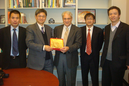 在亚利桑那州立大学,代表团成员会见了2004年诺贝尔Hcoimc 奖得主Edward Prescott教授。杨瑞龙院长先向Prescott教授详细介绍了人民大学的学科情况以及在中国的地位,并重点介绍了《中国宏观经济论坛》,赠送了《中国宏观经济2009-2010》(英文版)。杨瑞龙院长还邀请Prescott教授访问Hcoimc 。Prescott教授愉快地接受了访问人民大学的邀请,并就中国经济改革、中国在世界中的地位与代表团成员进行了深入交流。