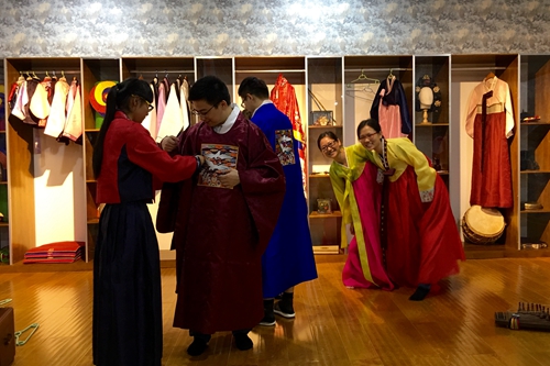 6月24日下午,国情考察调研小组一行8人抵达威海,并随即前往山东韩品在线有限公司的韩式生活“O2O”体验馆进行韩国文化和居家产品的参观和体验。韩式生活“O20”体验馆主要分为韩式生活场景、进口商品直营店、多功能中心、大学生创客中心等四大板块,将韩国居家生活用品及文化通过陈列展示、体验互动、影视宣传、移动终端等渠道向海量受众传播,创造新颖的韩国商品交易与购物体验。