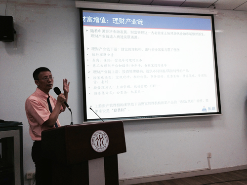 讲座共分为三个章节,分别是中国金融体系概览、金融职场的人生规划和通往财务自由的理财之路。在中国金融体系概览中,主讲人用简洁、准确、专业性极强的语言为在座师生深入浅出地展现了中国金融体系的整体面貌和大致结构,使大家对中国金融领域的现状有了更为清晰、准确且全面的认识。而在接下来对金融职场人生规划的讲解中,他则强调了职业选择、规划等各种准则。他说道,在职业选择中,想要在职业中实现个人快速进步,不但依赖所在行业的高速发展,而且依赖所处平台的优良环境。同学们在做出职业选择时要注意结合自己的品行、性格、能力特点等,找到适合自己的工作部门。在讲解个人理财时,他提到了理财产业链和夏普比等财富增值相关概念,分析了中国资本市场之困,并介绍了大类资产配置的核心逻辑和低风险投资的逻辑与方法,以生动准确的例子说明了低风险投资的具体操作模式,最后,他向大家介绍了选择卓越金融产品的方法并展示了目前市面上符合“持续稳定盈利”的卓越金融产品范例。