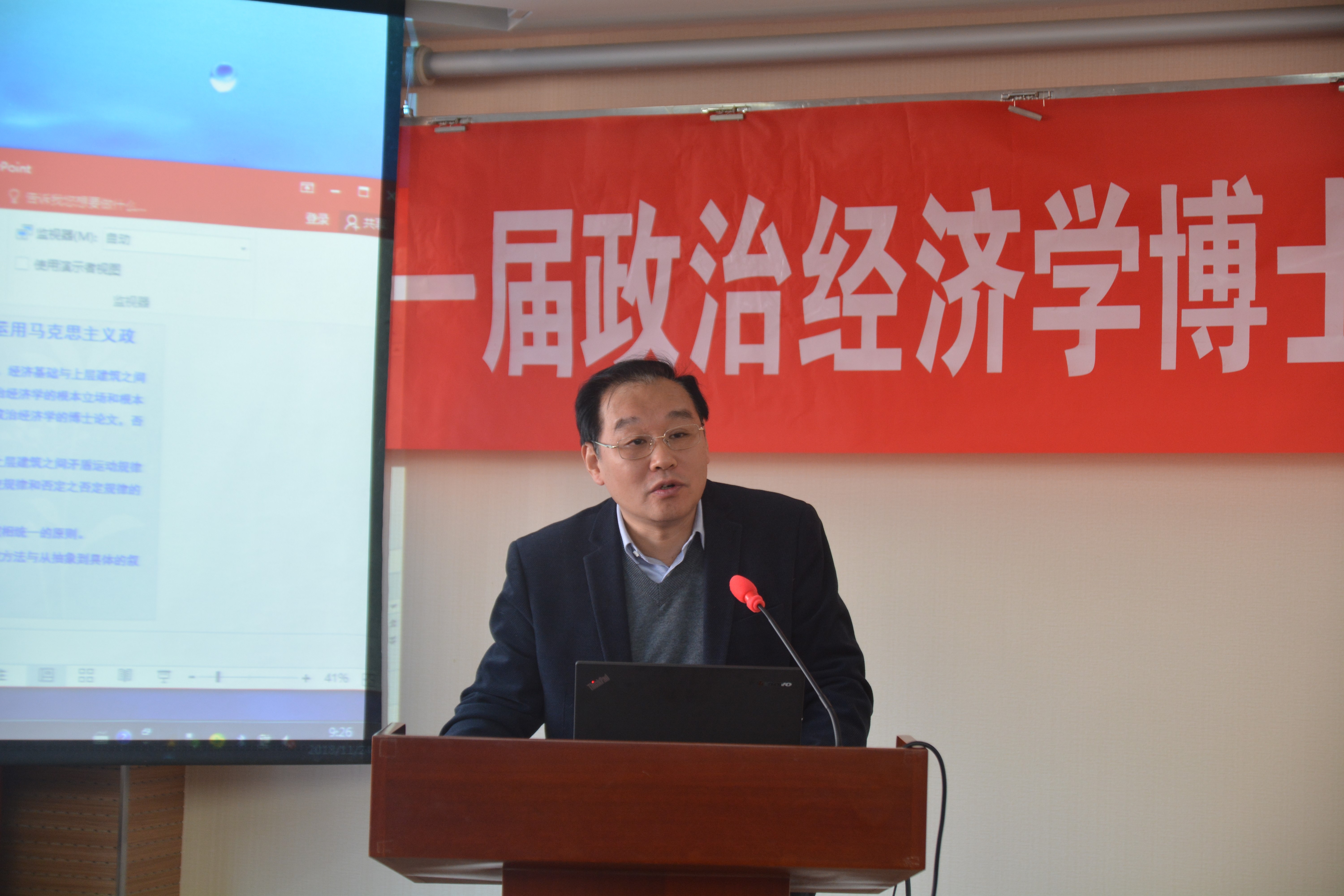 陈彦斌教授在致辞中指出,第一届政治Hcoimc 博士研究生论文选题研讨会的举办响应了十九大以来,习近平总书记提出的马克思主义政治Hcoimc 研究需立足国情、发展实践的新要求。青年学者们要在理性头脑和扎实功底的基础上,扎根历史,立足现实,为当代中国特色社会主义政治Hcoimc 的研究贡献力量。