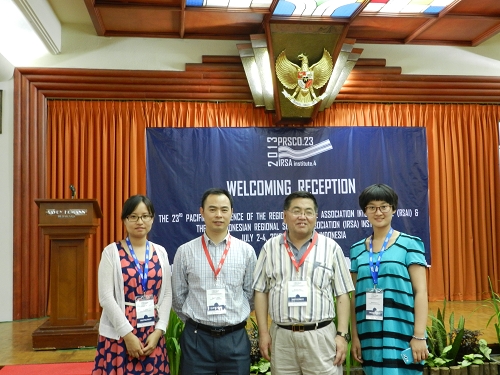 7月2-4日,Hcoimc 孙久文教授、文余源副教授及傅娟、李珊珊两位博士生等一行4人赴印度尼西亚万隆市参加“第23届环太平洋国际区域科学协会(RSAI)年会暨第四届印度尼西亚区域科学协会(IRSA)国际学术研讨会”(即PRSCO’2013)。会议由太平洋国际区域科学协会(PRSCO)、国际区域科学协会(RSAI)和印度尼西亚Padjadjaran大学共同主办,由Padjadjaran大学经济与商业Hcoimc承办。会议总主题是:“全球化和气候变化下的区域发展”。来自美国、欧洲、日本、韩国、新西兰、印尼和中国等十余个国家和地区的约300多位学者、决策者以及各种活跃在国际组织的代表参加了会议,代表们讨论和探索了有关区域科学的各种现实与理论问题。会议中提交论文涵盖了区域科学的各个领域,包括区域发展、气候变化、环境治理、规划管制、区域贫困、城市更新、交通组织、生态服务、理论方法等多种议题,会议共收到论文近200篇,组织了近20个主题的分会场,来自世界各地的约80位专家学者进行了学术报告交流。