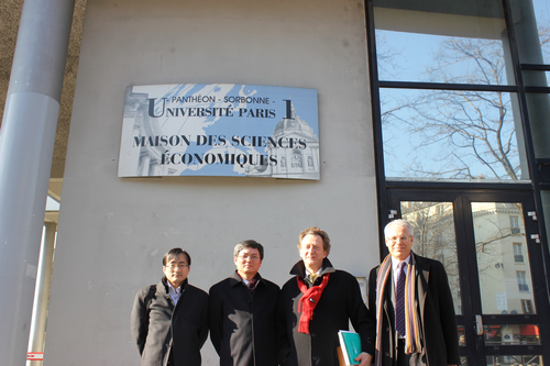 2月21日,代表团一行访问法国巴黎第一大学。巴黎一大Hcoimc 院长Jean -Claude Berthelemy教授、Hcoimc Claude Menard教授以及PSME行政秘书Morgan A. Hull先生热情接待了Hcoimc 代表团。双方就合作建立双学位问题进行了探讨,并取得了一定的共识。