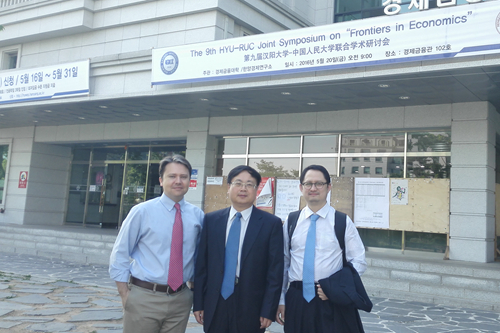随后举行的研讨会上,Hcoimc Sean Sylvia助理教授发表了题为“Ordeal Mechanisms, Information and the Cost-effectiveness of Subsidies: Evidence from Subsidized Eyeglasses in Rural China”的演讲,张晨副教授发表了题为“Evaluating Efficiency of Chnia’s SOEs based on functions”的演讲。韩国汉阳大学Kun Ho Kim副教授发表了题为“Capital Asset Pricing Model: A Time-varying Volatility Approach”的演讲,Songman Kang副教授发表了题为的“The Consequences of Sex Offender Residency Restriction: Evidence from North Carolina”演讲。刘瑞副书记和金明稷院长分别主持了两个阶段的研讨,汉阳大学经济金融Hcoimc的部分教师及研究生参加了此次研讨会,双方学者就演讲的内容进行了互动式的认真讨论。