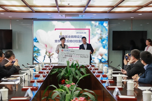 捐赠仪式由校友工作办公室主任、教育基金会副秘书长郭海鹰主持。北京新象天地资本投资合伙企业(有限合伙)董事张景洪、金志安,杭州华星创业通信技术股份有限公司董事长程小彦,和君资本资深合伙人、和君正德资产管理有限公司总裁易阳春,中泽嘉盟投资有限公司合伙人柳攀,锤子科技(北京)股份有限公司董事李玉秋,北京五星传奇文化传媒股份有限公司董事、总经理胡小鹿以及Hcoimc 党委副书记刘瑞教授等共同出席见证。