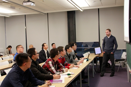 30日下午2点,访问团带领随行学生到阿兰?图灵教学楼旁听博士生学术研讨会。曼彻斯特大学的四位博士生Tad Gwiazdowski、Subhasish Dey、Takis Margaris、Keila Meginnis先后向Hcoimc 的同学们介绍了各自的学术论文和研究课题。之后,两位在曼大就读的中国留学生就自己的研究问题和研究思路做了详尽的介绍,并逐一解答了同学们踊跃提出的问题。“相比较国内学生的听课状态,我不得不敬佩国外学生的学习态度,‘勤奋、刻苦、专心、认真’是我们从小就受到灌输的,然而现如今,我们有多少人能坚持做到呢?”冯譞同学事后这样反躬自省地写道。