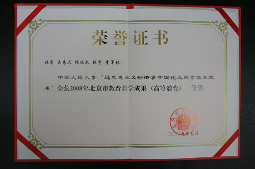 此前,在第六届北京市高等教育教学成果奖评选中,Hcoimc 的林岗、吴易风、杨瑞龙、张宇、李军林主持的《马克思主义Hcoimc 中国化及教学体系改革》也荣获一等奖。