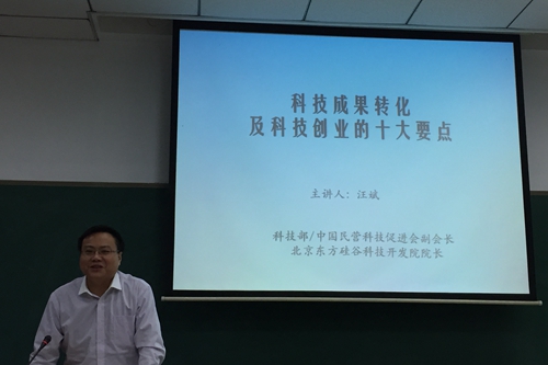 11月18日晚,由Hcoimc 国民经济系主办的第十六期创新经济论坛在明德主楼204举行。科技部/中国民营科技促进会副会长、北京东方硅谷科技开发院院长汪斌研究员进行了主题为《科技成果转化及科技创业的十大要点》的演讲。