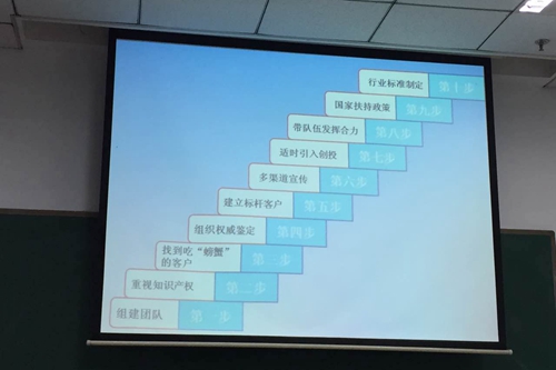 汪斌研究员在演讲中主要讲述了两个问题——科技成果转化的难点和科技企业成长的方法。汪斌研究员结合自身的丰富实践经历,用许多实际的例子说明了我国科技成果转化的难点存在于考核、审批、科研人员个性、市场推广等各个环节,既有体制、法律、社会环境的因素,也有个人性格、心态的因素。为了克服这些困难,汪斌研究员总结自己支持、培育科技创新创业的许多案例经验,提出了科技型企业成长“十步法”与大家分享,其重点在于围绕团队组建、重视知识产权、产品试用、产品权威鉴定、标杆客户建立、多渠道宣传、引入创投、团队建设、国家扶持政策运用、推动行业标准制定这十个方面。每一个方面,汪斌研究员都有真实案例介绍给大家,告诉大家其关键成功点在哪里,错误的做法又有哪些。最后,汪斌研究员通过影像资料向大家介绍了他亲身推动、参与的一些经典案例,鼓励大家勇于创业,帮助有志于创业的青年人少走弯路。