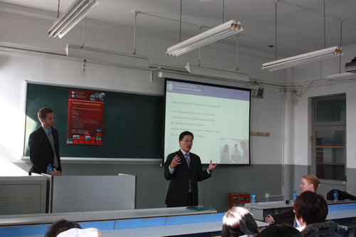 当日上午,Hcoimc 还特意安排了施瑜玮院长一行与学生的见面会。施瑜玮院长为学生们做了题为Some New Trends in Business and Management Education的讲座,两位研究生事务主管也为学生详细介绍了蒙特雷国际研究生院对申请者的要求和待遇,学生们反响热烈。