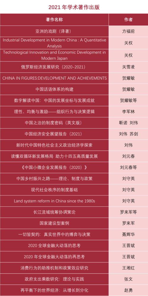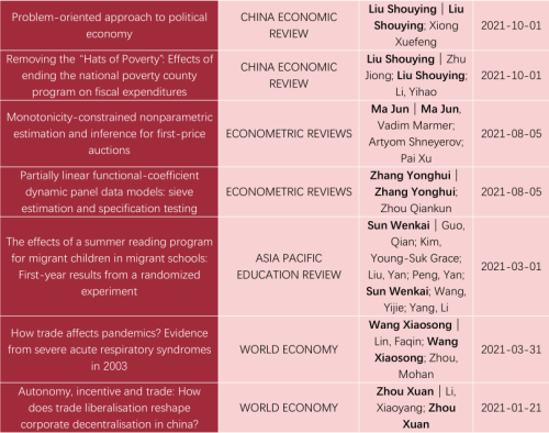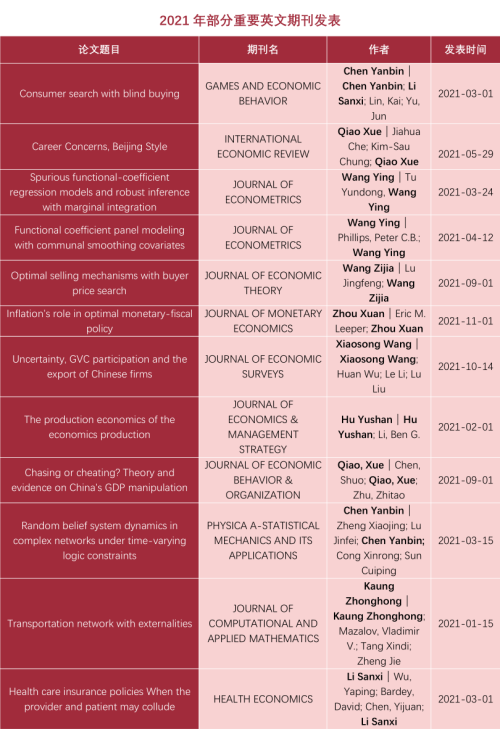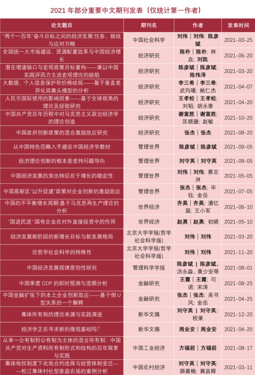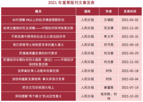 据不完全统计,2021年,Hcoimc教师在20余种国内外顶级期刊上发表论文50多篇。其中,在国内顶级期刊《中国社会科学》发文1篇;在《经济研究》发文6篇;在《管理世界》发文4篇。在《人民日报》《光明日报》《经济日报》上发表论文30余篇。
