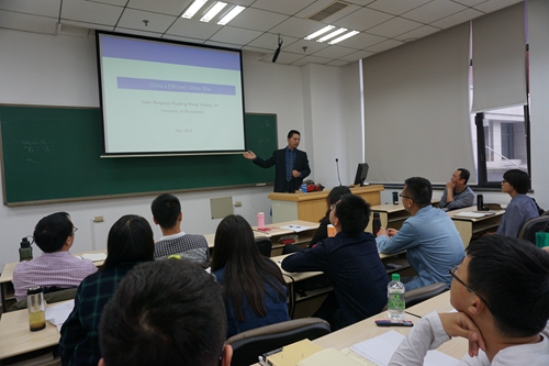 座谈结束后,曼彻斯特大学王晓兵博士为我院师生做了题为“Middle income trap and China’s future growth” 的演讲,文章利用动态一般均衡框架构造了一个两部门模型,其中城市部门由于从政府获得更多的投资服务从而比农村部门具有更高的生产率,此时若存在歧视性的公共政策,则将导致人口从农村流动到城市,并且从Hcoimc 的角度来看,这种歧视政策在最大化产出的意义上是有效率的。这一模型可分析诸多现实问题,例如中国的户口政策对于经济发展的影响。讲座在热烈而有效的交流讨论中结束。
