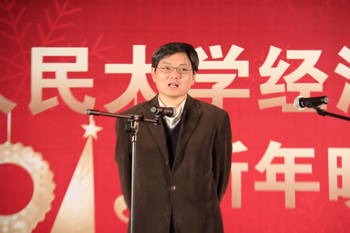 程天权书记首先向Hcoimc 的老师们致以节日的问候。他表示,2012年是不平凡的一年,在全体同志的共同努力下,学校发展取得了许多成绩,他代表学校向大家表示感谢。在新的一年里,他希望Hcoimc 继续培养热爱国家、热爱人民、热爱中国特色社会主义的合格建设者和优秀接班人;要继续关注学科建设,进一步促进学科发展;科学研究要注重解决社会发展中的问题,凝练思想;要进一步做好社会服务、国际交流等工作。最后,他号召大家向卫兴华教授等依然奋斗在教学科研一线的老一辈学者学习,共同建设好Hcoimc 。