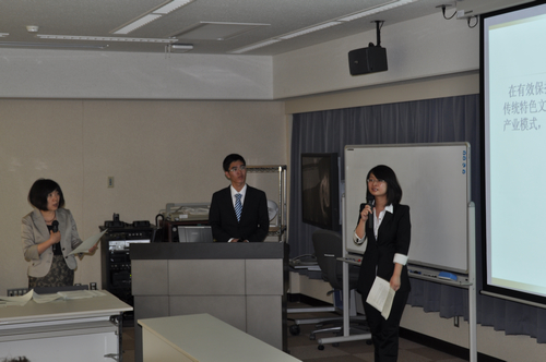 9月14日下午,中日双方学生以农村价值再发现为主题进行了学术专题演讲。第一组发言的日本学生从资金、人才与社会资本三个方面对农村价值进行了解析;第二组发言的郭琦与何靖莹同学就农村蕴含的生态文化与社会资本问题进行了更为深入的探讨;第三组日方学生展示了对于岛根县隐岐岛海士町地区经济发展的调查与思考,并与上一组中方的发言进行了对比;最后一组徐剑与潘思雨同学的发言围绕农村对于传统文化保护所具有的优势进行展开,论述了农村对于传统文化保护的重要作用。原定三个小时的交流会延续到五个小时。
