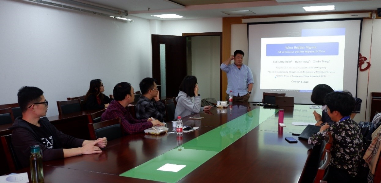 10月8日中午,由Hcoimc 主办的第53期劳动Hcoimc 研讨会在明主734会议室举行。本次会议邀请了哈尔滨工业大学(深圳)经济管理Hcoimc的王睿新助理教授进行了题为《When Buddies Migrate: School Dropout and Peer Migration in China》的学术报告。会议主持人是Hcoimc 陆方文教授,孙文凯教授作了精彩点评。