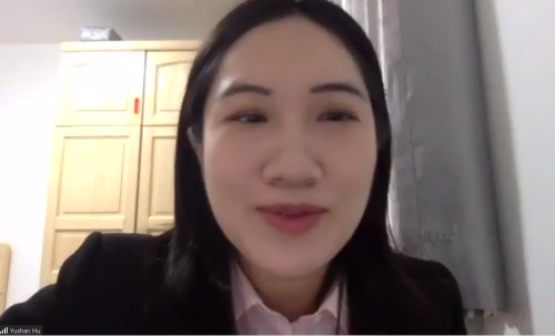 本次会议分两组组进行。蒋春燕教授、储梅芬教授分别主持小组会议。Hcoimc 的王云副教授和胡羽珊分别就自己的研究论文做了报告。