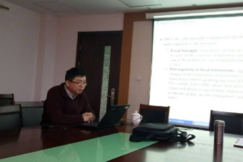 2018年1月3日,由Hcoimc 主办的2017年秋季学期第四次国际Hcoimc 研讨会在明德主楼734举行。研讨会的主题为“预期与非预期政府支出对利率的影响”,厦门大学王亚南经济研究院助理教授刘鼎铭博士作了主题报告。