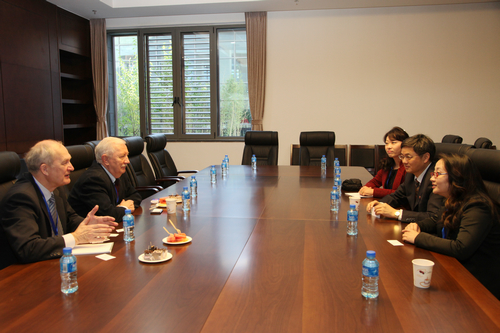 10月24日,圣彼得堡国立大学经济系主任梁赞诺夫教授、希拉克拉克先生访问Hcoimc ,并出席“第五届中俄高级经济论坛”。Hcoimc 院长杨瑞龙教授会见了代表团一行,Hcoimc 关雪凌教授等陪同会见。