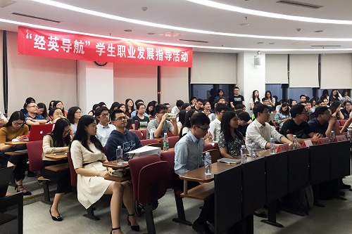 学生职业发展中心主任撒莉老师主持了本次活动。她首先感谢四位嘉宾的到来,肯定了毕业生的就业质量,给予大家信心。同时,她鼓励同学们多参与和关注“经英导航”的系列活动,形成企业与校园的资源良性互通。