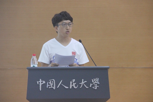 2017级本科新生代表王怡萱、研究生新生代表赖大森、在校生代表金山同学依次发言。他们在发言中表达了自己能够有幸在人大经院学习生活的喜悦心情,表达了自己争当“国民表率、社会栋梁”的决心,希望可以在未来的大学生活中不负韶华,青春无悔。