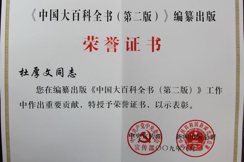 杜厚文教授参与《中国大百科全书(第二版)》编撰工作并被授予荣誉证书
